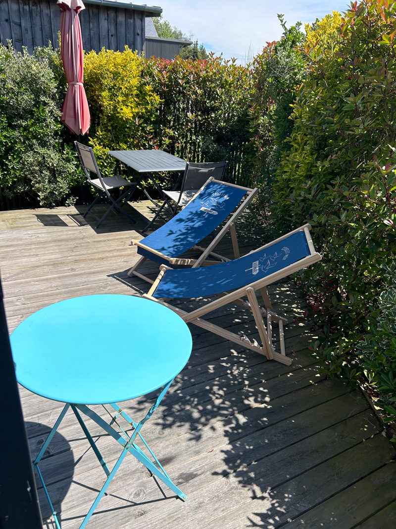 Espace extérieur clos de 20 m² avec terrasse bois (exposé sud). Stationnement privé face au gîte.